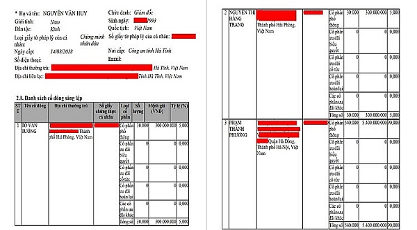 Công ty có vốn điều lệ 6 tỷ đồng, cổ đông sáng lập là ông Phạm Thành Phương, góp 5,4 tỷ đồng, tương đương 90%; bà Nguyễn Thị Hằng Trang, góp 300 triệu đồng, tương đương 5% và ông Tô Văn Tưởng, góp 300 triệu đồng, tương đương 5%. Giám đốc công ty là ông Nguyễn Văn Huy (SN 1993), quê Hà Tĩnh.