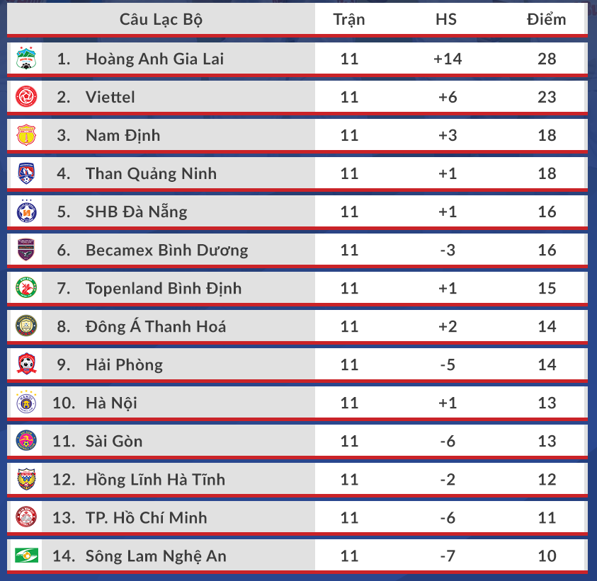 BXh V-League 2021 sau vòng 11