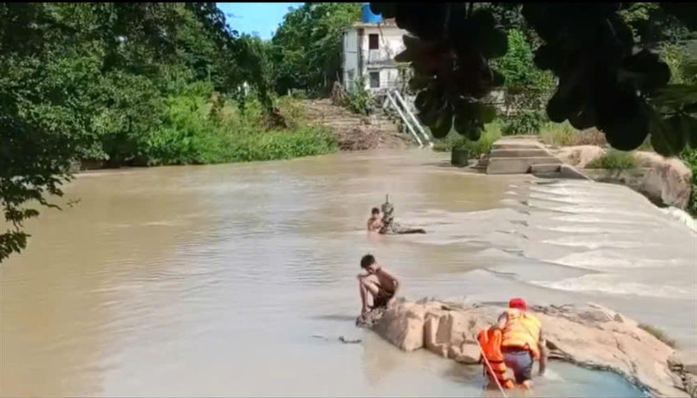 Lực lượng chức năng tiếp cận cứu 02 học sinh giữa dòng nước xiết.