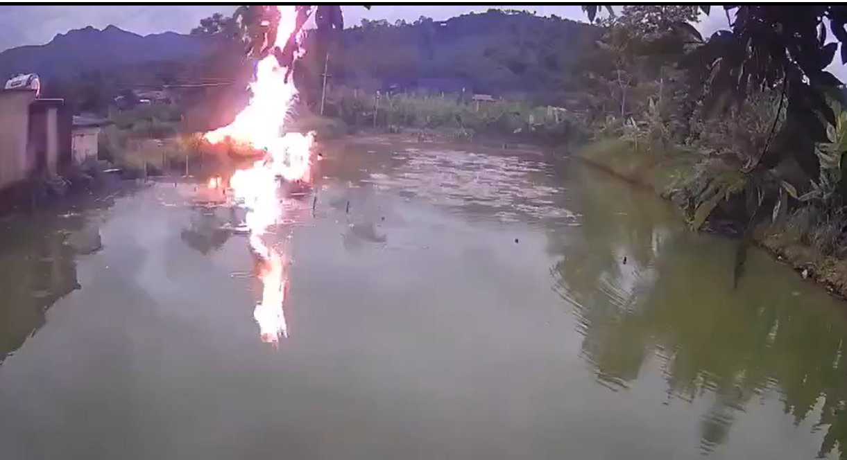 Luồng lửa điện xoẹt lên sáng rực, phát ra tiếng kêu rất lớn. Camera an ninh đã ghi lại toàn bộ sự việc.