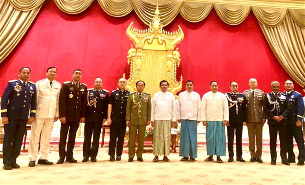 Các đại biểu Trưởng đoàn Cảnh sát các nước dự ASEAN lần thứ 42 chào xã giao Thủ tướng Myanmar.