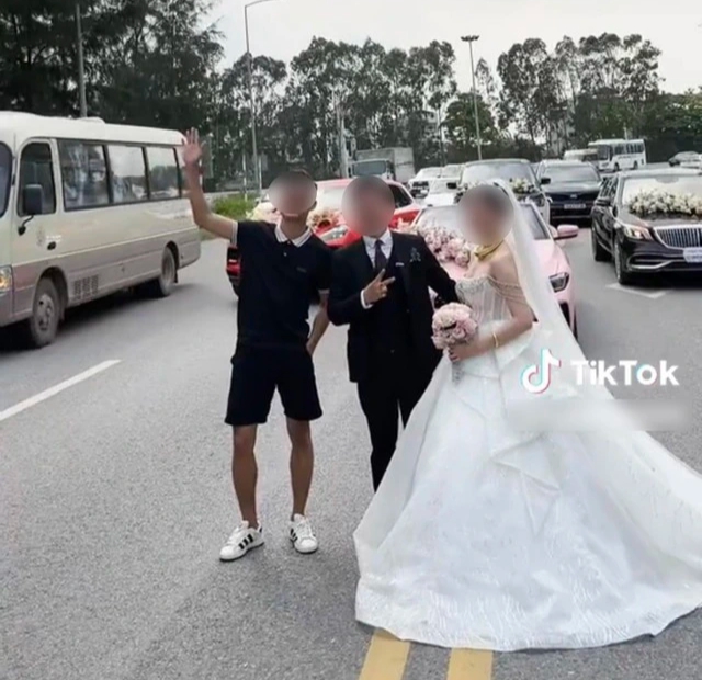 Trước đó, ngày 26/4, trên mạng xã hội lan truyền clip ticktok quay cảnh dàn xe sang rước dâu dàn hàng 3 trên đường. Trong clip cô dâu, chú rể dừng và xuống xe, đứng chụp ảnh giữa đường.