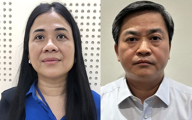 Bị can Lê Đức Thọ và bà chủ Xuyên Việt Oil Mai Thị Hồng Hạnh. Ảnh: Bộ Công an