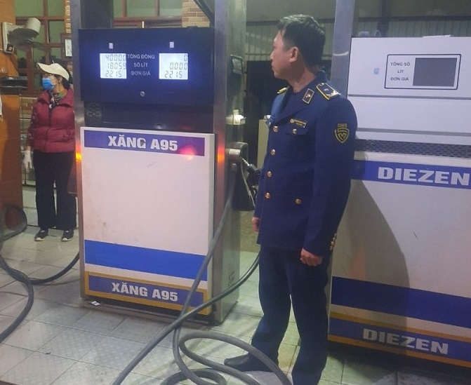 Lực lượng Quản lý thị trường Hà Nội kiểm tra cây xăng vi phạm