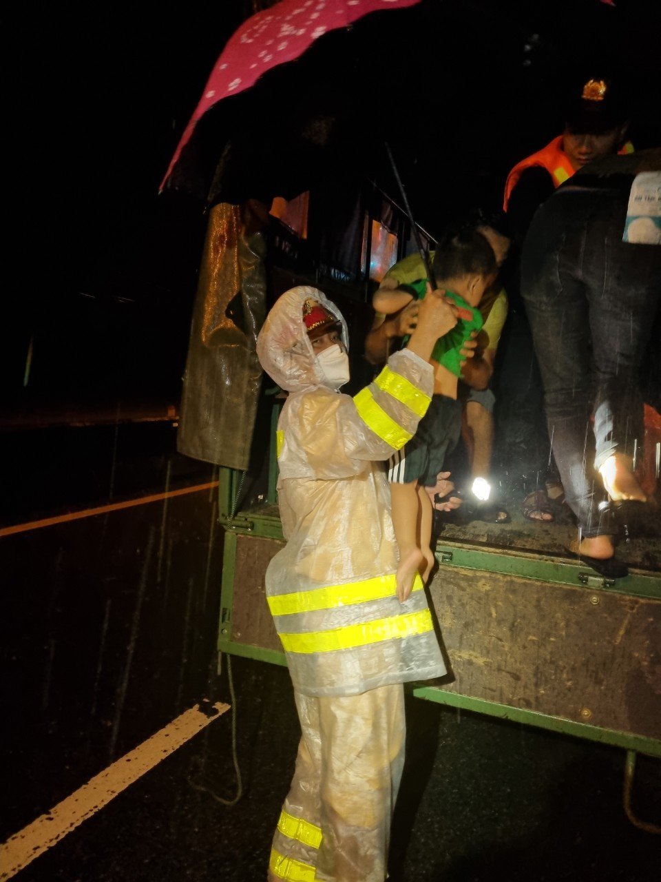 Nhận được tin báo, lực lượng chức năng đã điều động 2 xe chuyên dụng tiếp cận khu vực người dân mắc kẹt. Sau hơn 3 tiếng giải cứu, 22 người dân (trong đó có 3 trẻ em) cùng 7 xe máy và 5 ô tô đưa đến nơi an toàn.