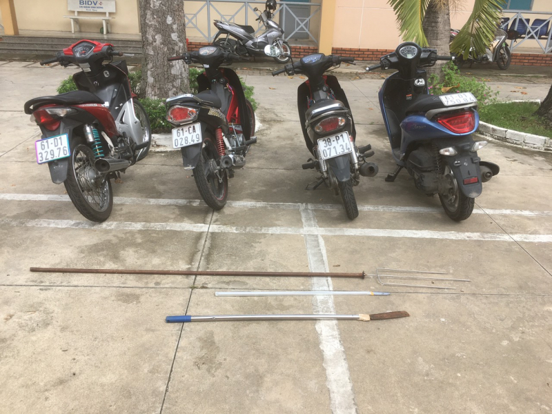 Qua truy xét, Đội CSHS Công an TP Dĩ An đã bắt giữ nhóm đối tượng trên khi chúng đang chuẩn bị hung khí tiếp tục đi gây án. Giang được xác định là đối tượng cầm đầu trong băng cướp này.