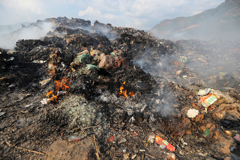 Bãi rác cháy ròng hơn 2 tháng, khói đen bao vây khu dân cư