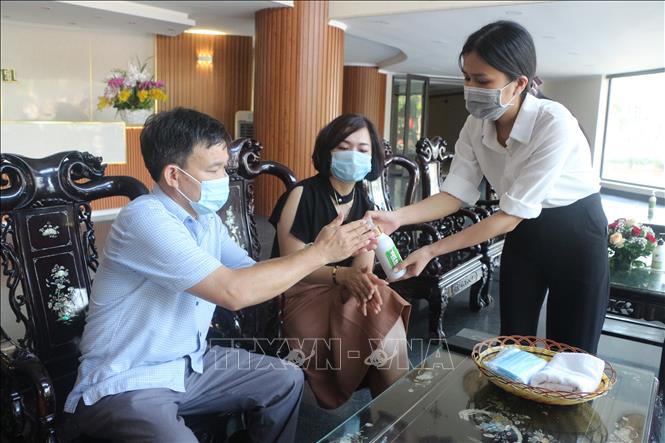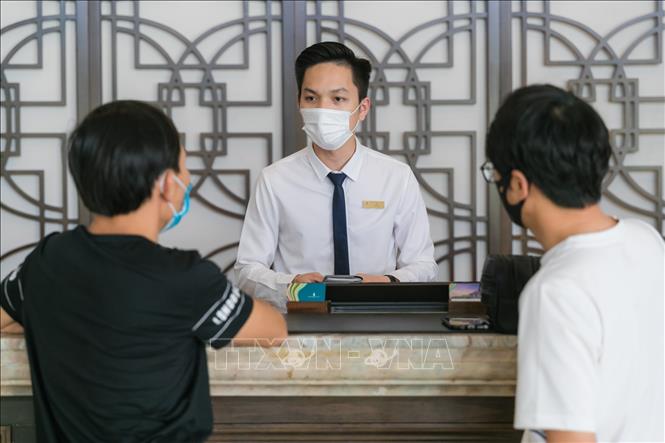Tại quầy lễ tân, các khách sạn, cơ sở lưu trú đã trang bị dung dịch nước rửa tay sát khuẩn, tờ khai y tế, khẩu trang, máy đo thân nhiệt, luôn sẵn sàng phục vụ du khách. Toàn bộ cán bộ nhân viên làm việc cũng được yêu cầu đeo khẩu trang trong suốt thời gian này.