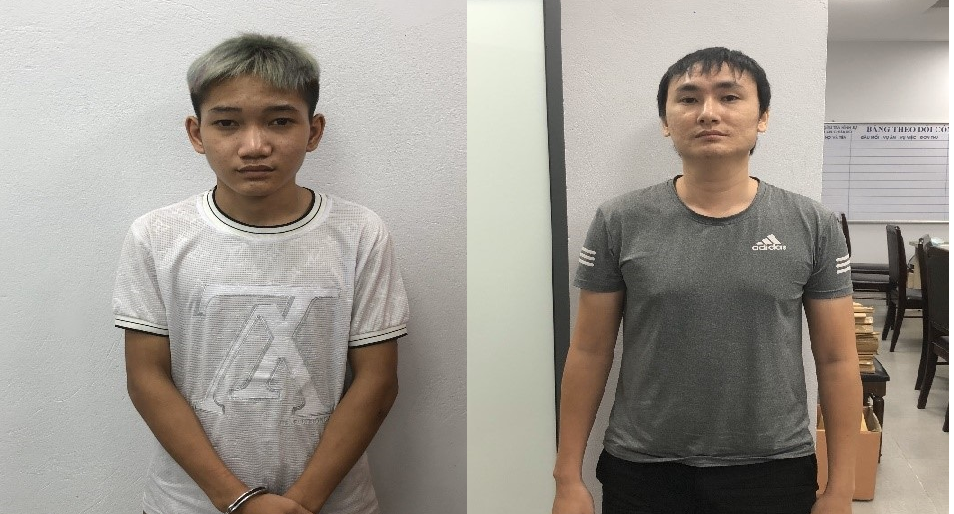 Đối tượng Đặng Hữu Thắng (áo trắng) và Nguyễn Duy Hà