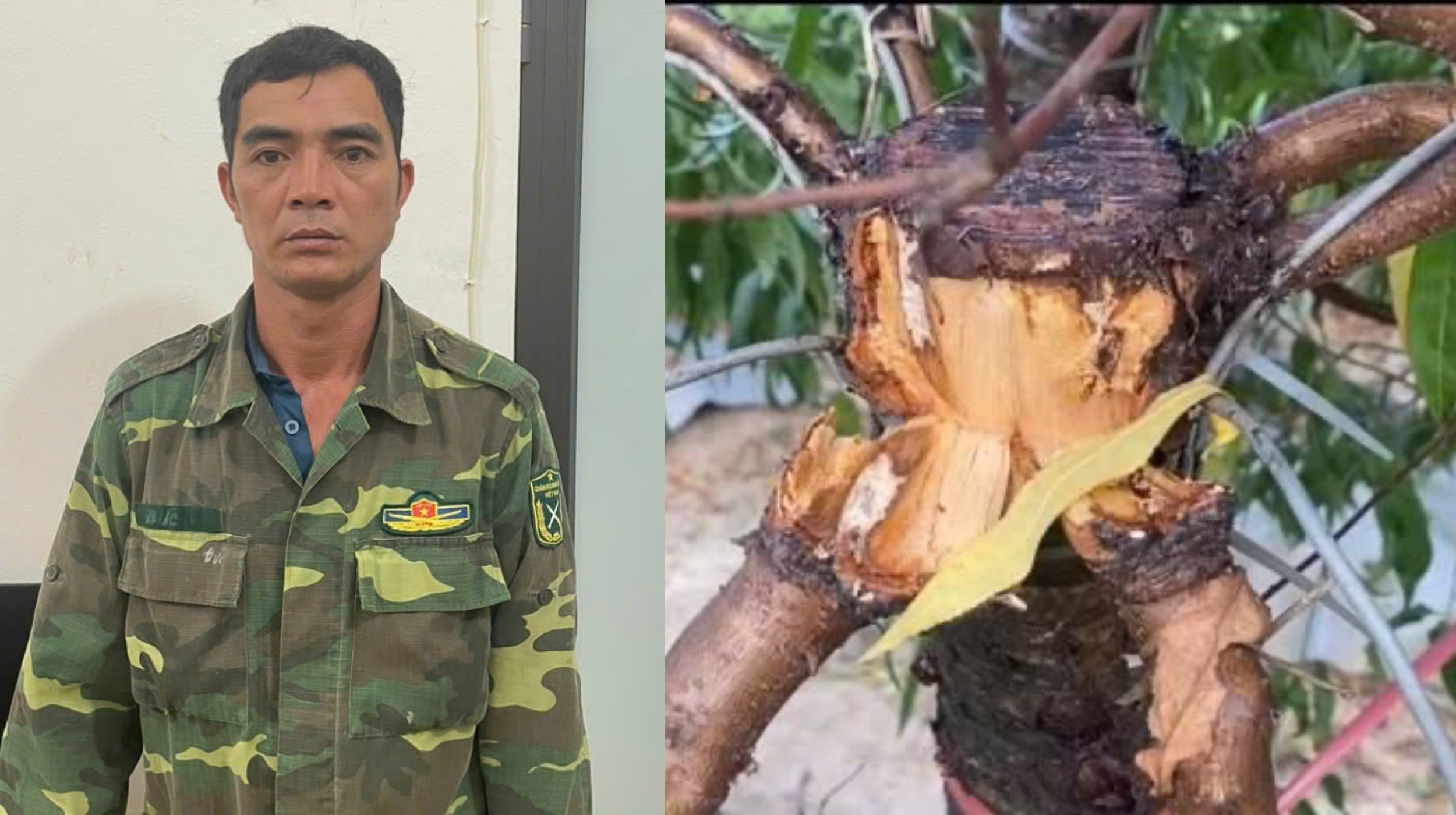 Đối tượng Nguyễn Việt Đức đã phá hoại hàng loạt cây đào - Ảnh: Công an Hà Nội