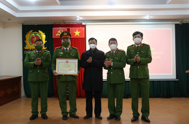 Chiều 22/2, Chủ tịch UBND huyện Lục Ngạn, tỉnh Bắc Giang đã khen thưởng đột xuất CSĐT tội phạm về ma tuý, Công an huyện Lục Ngạn có thành tích xuất sắc trong đấu tranh trấn áp tội phạm về ma tuý