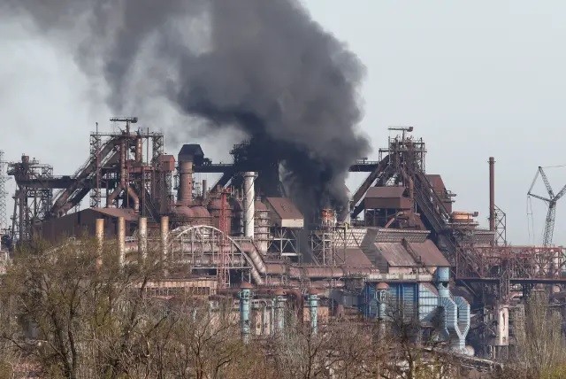 Khói bốc lên phía trên nhà máy Azovstal ở thành phố cảng Mariupol, Ukraine, ngày 25/4. (Nguồn: Reuters)