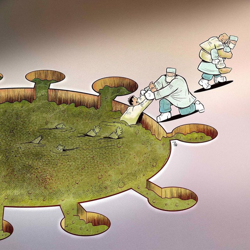 Bộ 10 bức tranh cảm động về những bác sĩ tuyến đầu chống dịch Covid-19