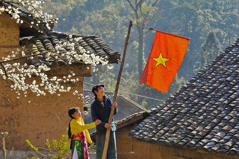 Cha con người Mông tại Sủng Là, Hà Giang dựng cờ Tổ quốc đón Tết cổ truyền