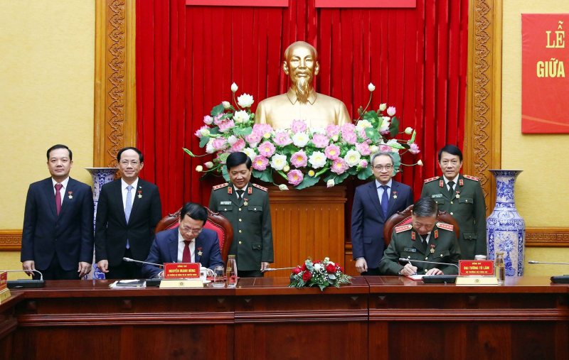 Bộ trưởng Tô Lâm cùng Bộ trưởng Bộ Thông tin và Truyền thông Nguyễn Mạnh Hùng ký Quy chế phối hợp giữa 2 Bộ