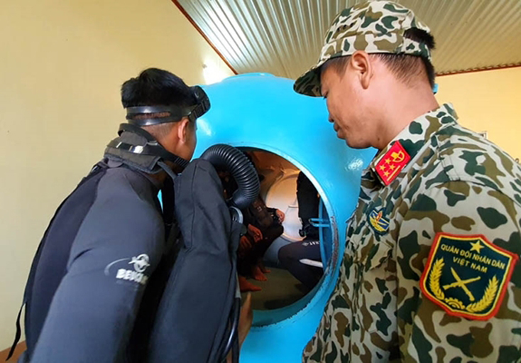 Rèn luyện sức chịu đựng áp lực độ sâu nước biển trong buồng tăng, giảm áp.