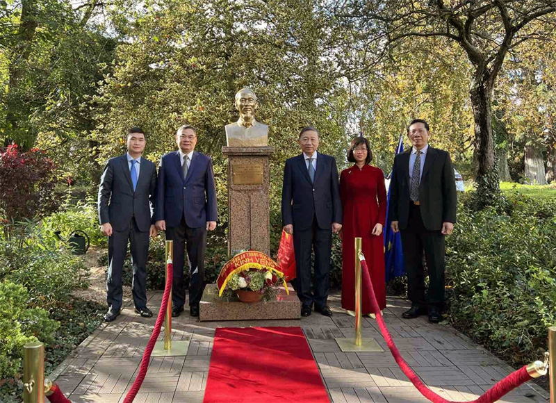 Trong thời gian công tác tại Pháp, Đại tướng Tô Lâm, Ủy viên Bộ Chính trị, Bộ trưởng Công an cùng Đoàn đại biểu cấp cao Bộ Công an Việt Nam đã đến đặt vòng hoa tại tượng đài Chủ tịch Hồ Chí Minh trong Khu tưởng niệm Hồ Chủ tịch ở thành phố Montreuil, ngoại ô Thủ đô Paris, Pháp. Vòng hoa mang dòng chữ “Đảng ủy Công an Trung ương - kính viếng”.