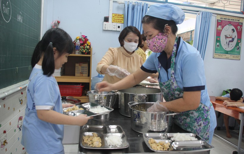 Bữa ăn bán trú tại Trường Tiểu học Nguyễn Thị Minh Khai. Ảnh: Hồ Phúc