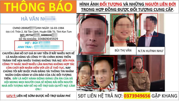 Không liên quan gì đến các khoản vay nhưng một chủ tịch huyện ở Kon Tum vô cớ bị nhóm đòi nợ dùng hình ảnh cá nhân đăng lên mạng xã hội để đòi nợ.