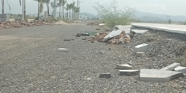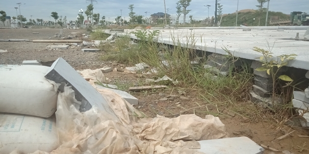 | Công trình đang xây dựng nham nhở. Ảnh: VT |