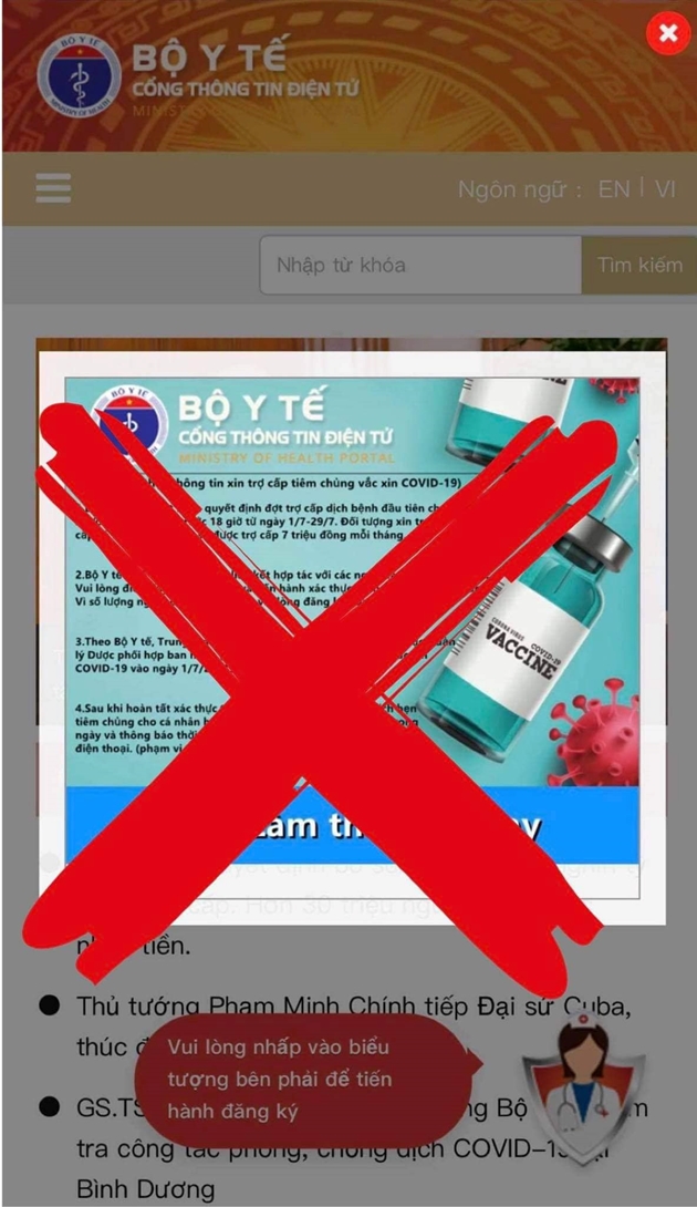 Trang thông tin giả mạo cổng thông tin điện tử của Bộ Y tế