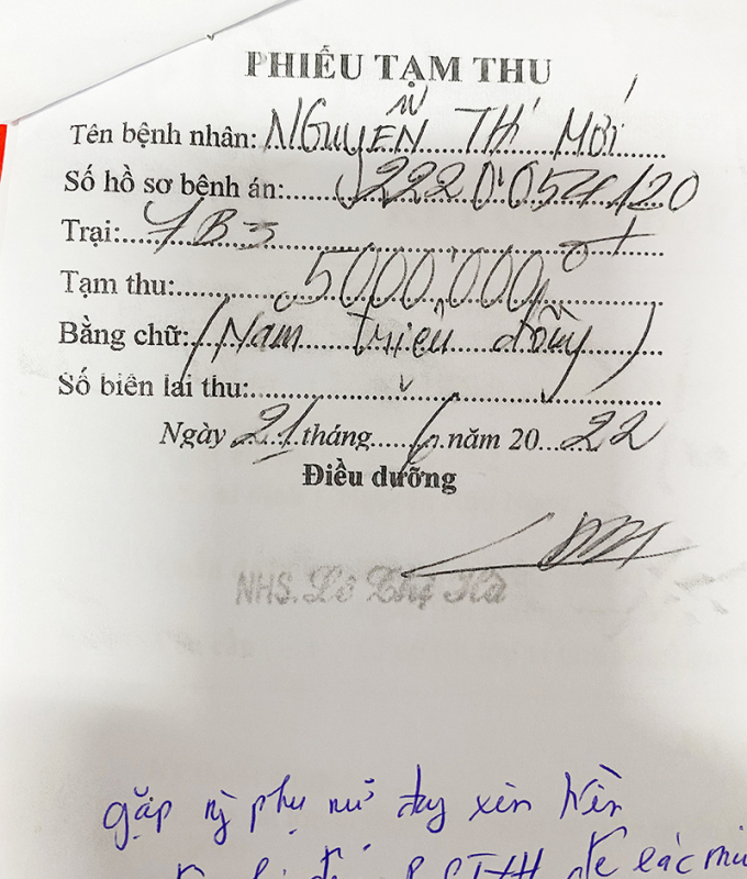 Một phiếu tạm thu tiền bệnh nhân được làm giả để tung lên mạng.