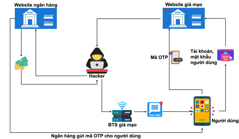 Cách thức trạm BTS giả phát tán tin nhắn lừa đảo (Nguồn ảnh: Internet)