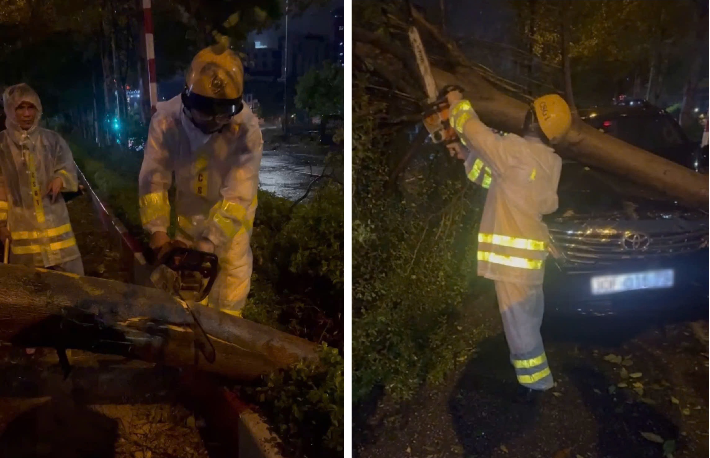 Tổ công tác đã huy động xe chuyên dụng, dùng cưa máy, cắt tỉa cây để giải cứu ô tô bị mắc kẹt. Đến khoảng 22h35', xe ô tô đã được di dời, cây đổ đã được thu gom, giao thông khu vực ổn định.
