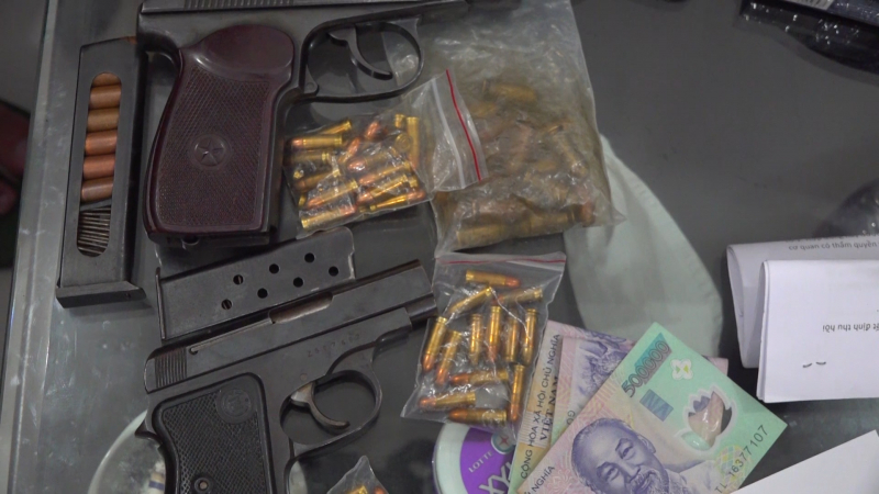 Khám xét nơi ở của hai đối tượng này, Công an tiếp tục thu giữ 1 khẩu súng, 8 viên đạn, trong đó 1 viên đã lên nòng và 13 viên đạn chúng mang theo. Ngoài ra, Công an cũng thu giữ môt bịch nilon bên trong chứa chất màu trắng nghi là ma túy.