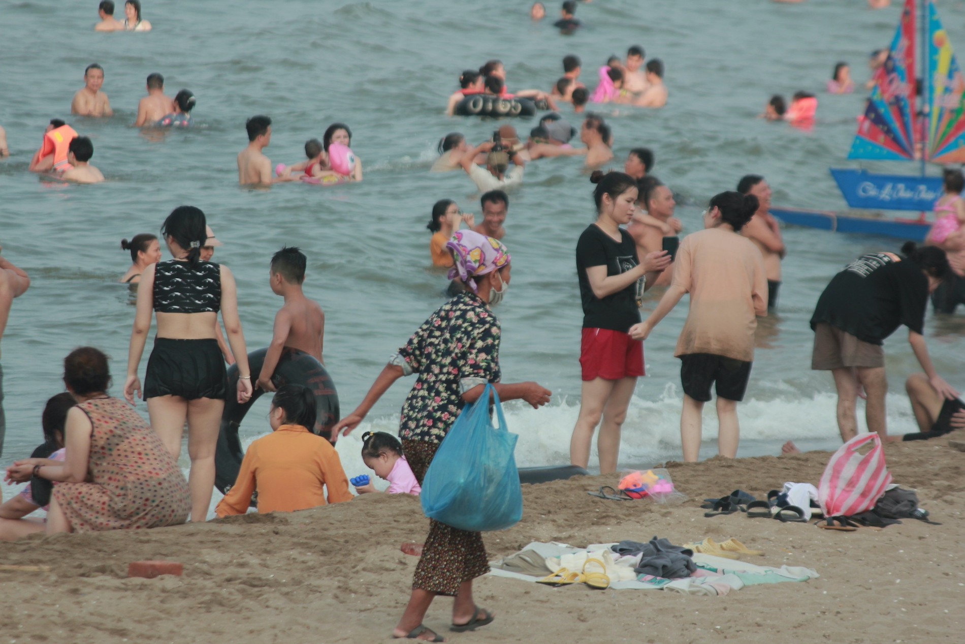 Những người bán hàng rong đi dọc bãi biển để mời chào khách mua.