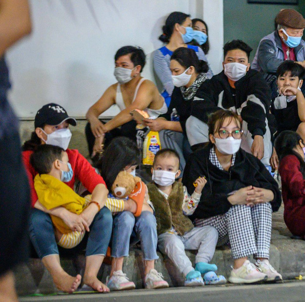 Rất nhiều cư dân của tòa T8 hoảng hốt chạy ra khỏi chung cư. Họ ngồi la liệt ở vỉa hè các tòa nhà xung quanh.
