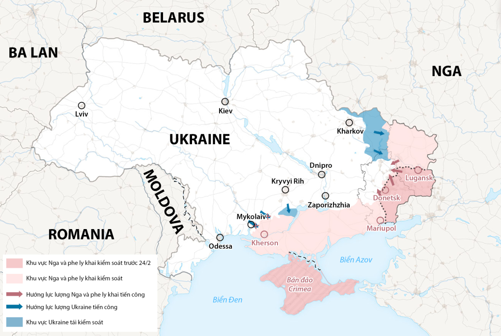 Cục diện chiến trường Ukraine sau hơn 8 tháng giao tranh. Đồ họa: WP.