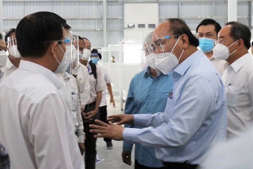 Chủ tịch nước Nguyễn Xuân Phúc làm việc tại Bình Dương vào ngày 30/7. Ảnh: T.Liêm