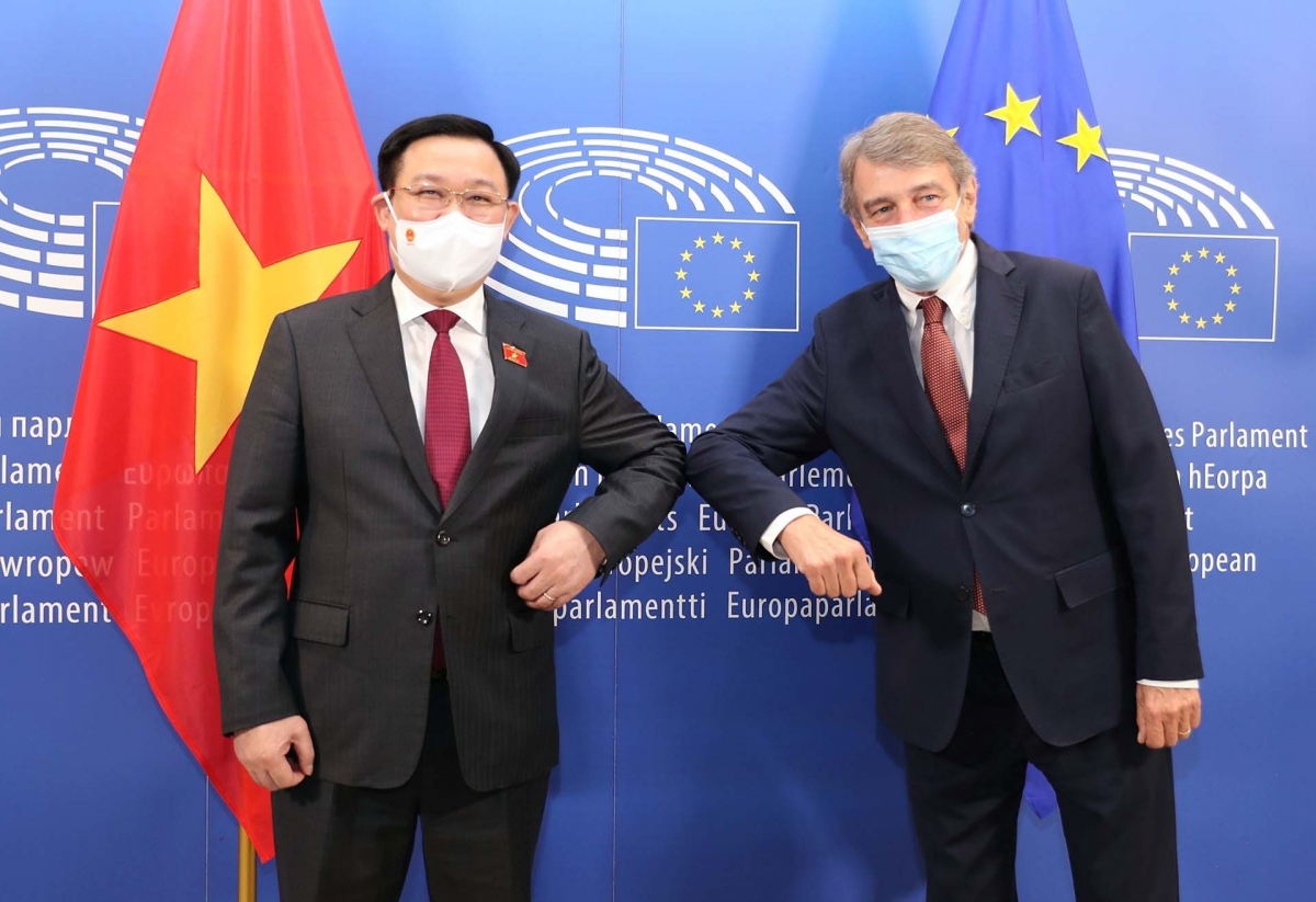 Chủ tịch Quốc hội Vương Đình Huệ và Chủ tịch Nghị viện châu Âu David Sassoli. Nguồn: TTXVN