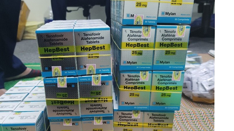 Ngoài ra, lực lượng chức năng còn phát hiện 35 lọ thuốc bán thành phẩm, trên sản phẩm không có nhãn hàng hóa, không rõ nguồn gốc xuất xứ và một lượng lớn bao bì dùng để đóng gói thành phẩm thuốc HepBest, tờ in hướng dẫn sử dụng, tem chống hàng giả, nhãn hàng hóa, vỏ hộp giấy của sản phẩm thuốc HepBest 25mg, cùng 1 máy in ngày sản xuất và hạn sử dụng trên vỏ bao bì thuốc.