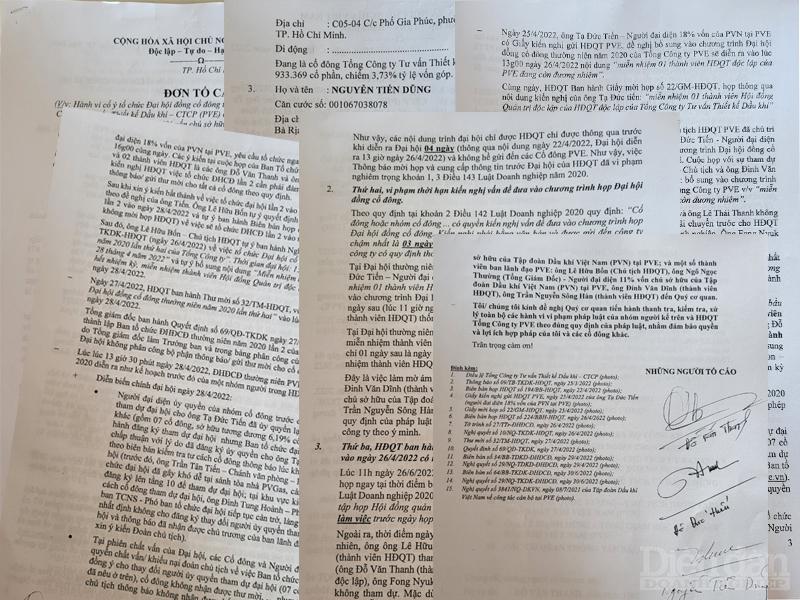 “Đây là hành vi cố tình cấu kết, xem thường pháp luật nhằm mục đích vụ lợi. Do đó, toàn bộ nội dung thông qua tại Nghị quyết số 34/BB-TDKD-ĐHĐCĐ ngày 29/4/2022 của PVE là trái pháp luật và không có giá trị pháp lý. Hành vi của nhóm cổ đông này cần phải được xử lý theo quy định của pháp luật, nhằm đảm bảo quyền và lợi ích hợp pháp của tôi và các cổ đông khác”, ông Đỗ Văn Thanh nêu trong đơn tố cáo. Đồng thời, ông Thanh cho biết, ông đã gửi đơn khởi kiện ra Tòa án nhân dân huyện Nhà bè yêu cầu hủy toàn bộ Nghị quyết của Hội đồng cổ đông và đã được Tòa tiếp nhận thụ lý.