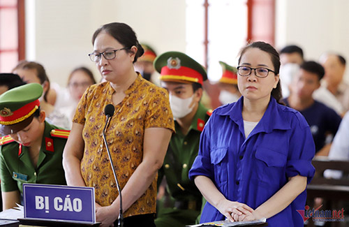 Bị cáo Lê Thị Dung (phải) và bị cáo Nguyễn Thị Hương trước toà phúc thẩm. Ảnh: CTV