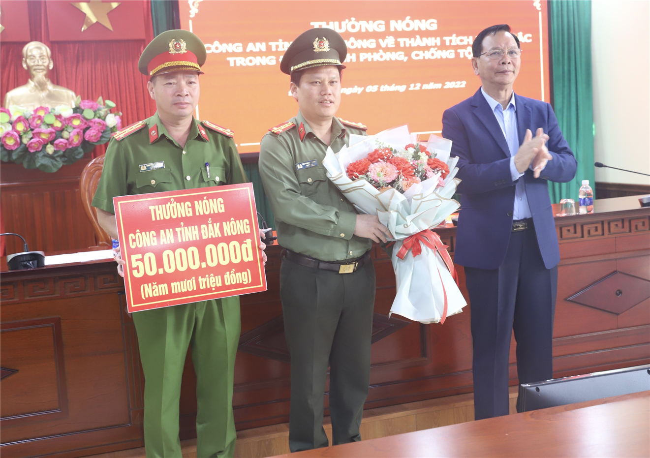 Trong sáng ngày 5/12, thay mặt lãnh đạo tỉnh, đồng chí Ngô Thanh Danh, Bí thư Tỉnh ủy, Trưởng đoàn Đại biểu Quốc hội tỉnh Đắk Nông đã đến chúc mừng, biểu dương chiến công xuất sắc, có ý nghĩa to lớn của Công an tỉnh Đắk Nông trong thời gian qua, đặc biệt là đấu tranh, triệt phá đường dây tổ chức đánh bạc, đánh bạc quy mô lớn, góp phần bảo đảm ANTT, bảo vệ cuộc sống bình yên và hạnh phúc của Nhân dân, phục vụ có hiệu quả nhiệm vụ phát triển kinh tế xã hội tại địa phương.