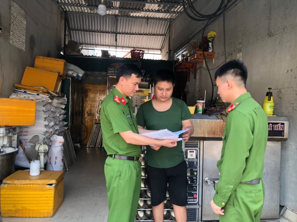 Công an xã Diễn Bích tuyên truyền, phổ biến pháp luật tại một cơ sở kinh doanh trên địa bàn