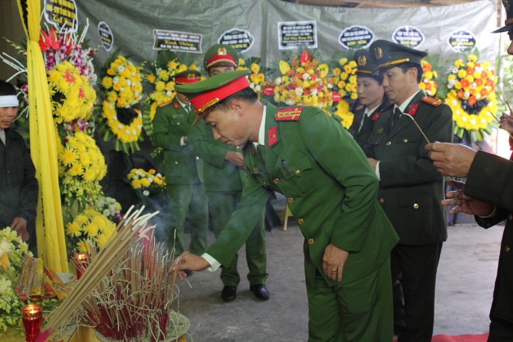 Chiều 17/11, đoàn công tác Công an tỉnh Nghệ An do đồng chí Đại tá Nguyễn Duy Thanh, Phó Giám đốc Công an tỉnh làm trưởng đoàn đã đến viếng đồng chí Đại úy Trần Trung Hiếu, cán bộ Công an xã Xuân Hồng, huyện Nghi Xuân hi sinh trong lúc làm nhiệm vụ và gửi lời chia buồn sâu sắc tới gia đình.