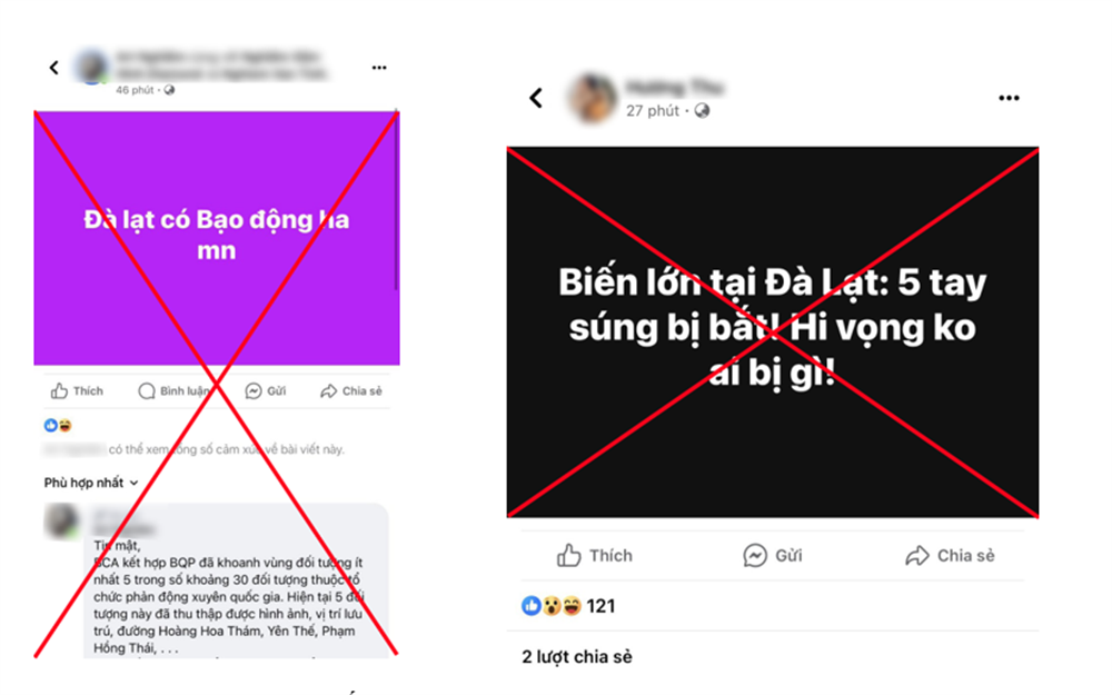 | Hình ảnh các bài viết có nội dung sai sự thật, gây hoang mang dư luận. |