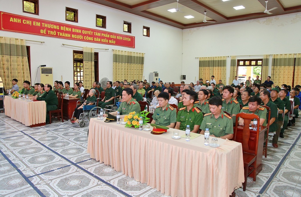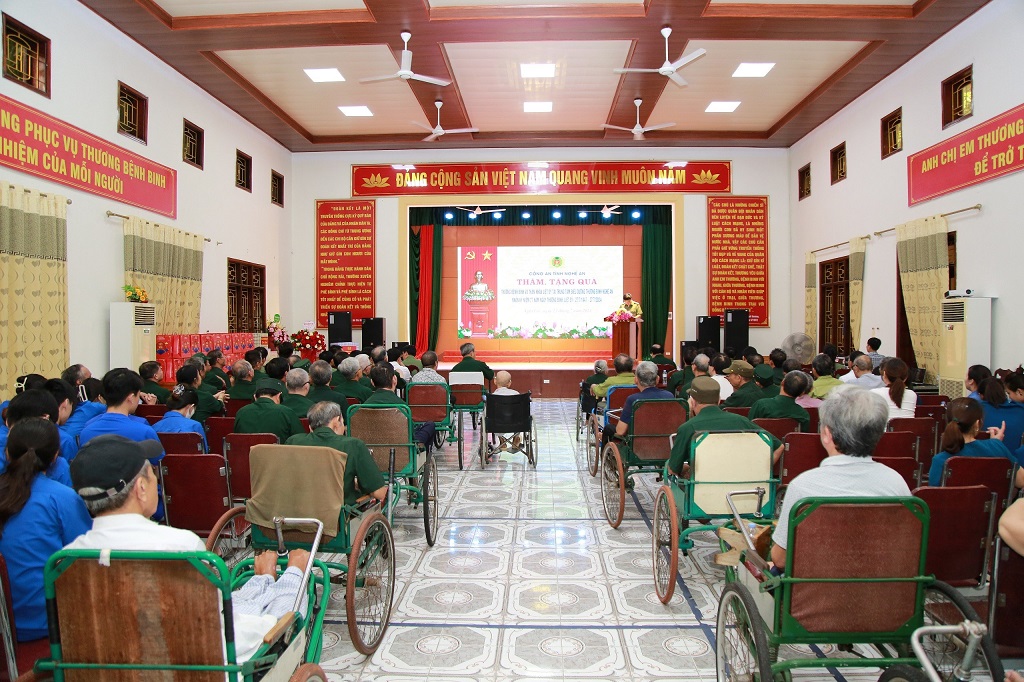 Tại buổi gặp gỡ, Lãnh đạo Công an tỉnh đã gửi lời chúc tới các thương, bệnh binh, thân nhân liệt sĩ và cán bộ, nhân viên Trung tâm Điều dưỡng thương binh tỉnh dồi dào sức khỏe, đồng thời bày tỏ lòng biết ơn sâu sắc trước những hy sinh, mất mát của các thương binh, lực lượng Công an Nghệ An luôn trân trọng, ghi nhớ và biết ơn những cống hiến, hy sinh của các thương, bệnh binh, gia đình liệt sỹ trong cuộc đấu tranh giải phóng dân tộc.