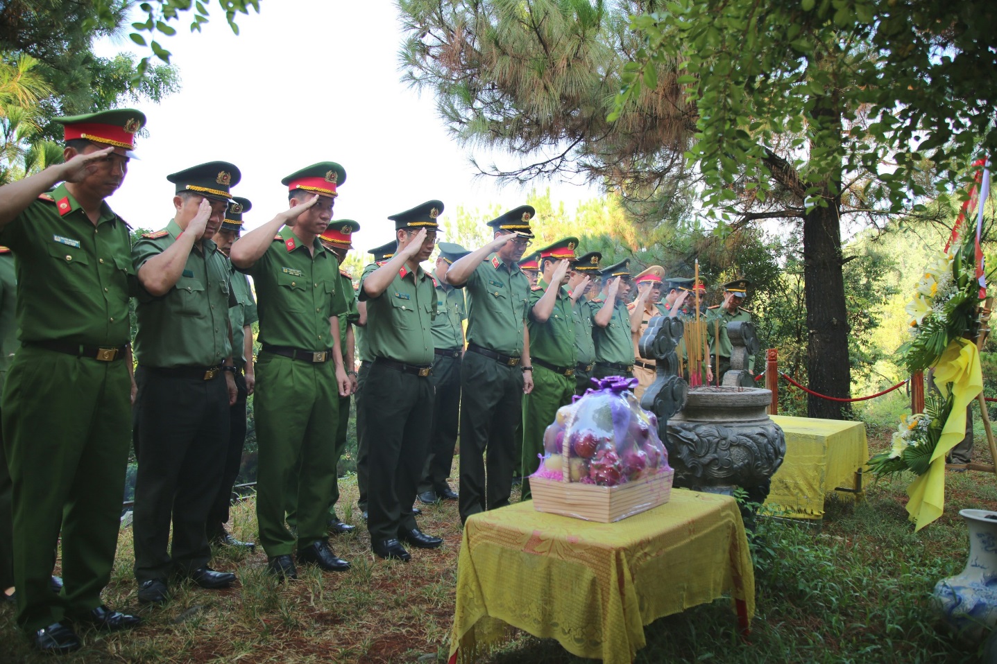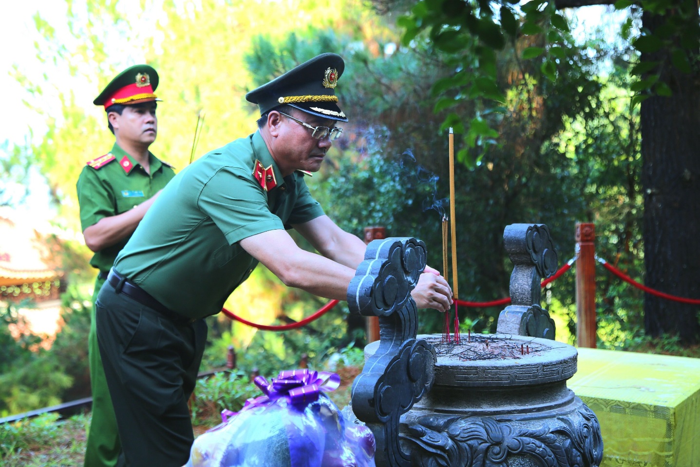 | Đồng chí Thiếu tướng Phạm Thế Tùng, Giám đốc Công an tỉnh dâng hương tri ân các anh hùng liệt sĩ tại Nghĩa trang Quốc gia Trường Sơn |