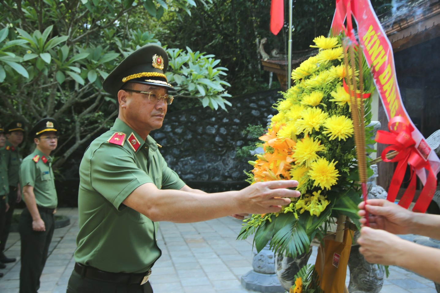 Đồng chí Thiếu tướng Phạm Thế Tùng, Giám đốc Công an tỉnh dâng hoa tại Đền thờ các Anh hùng Liệt sĩ đường 20 Quyết Thắng, tại xã Tân Trạch, huyện Bố Trạch, tỉnh Quảng Bình