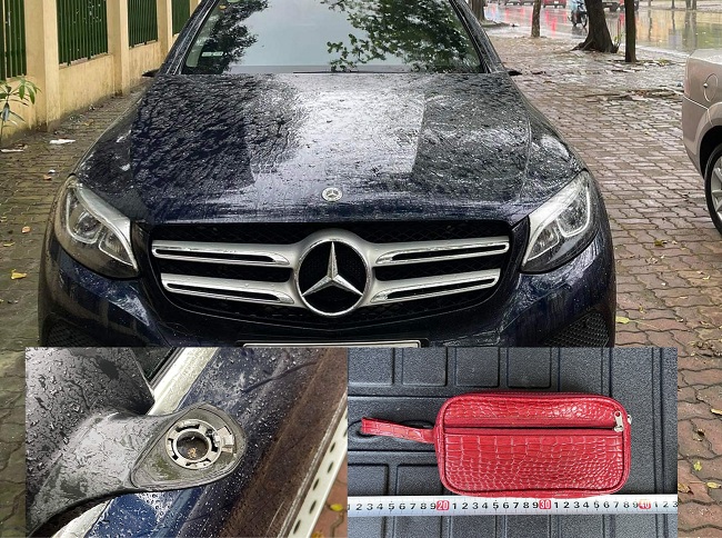 Chiếc ô tô bị các đối tượng bẻ kính và túi xách nhóm đối tượng cướp được của các nạn nhân