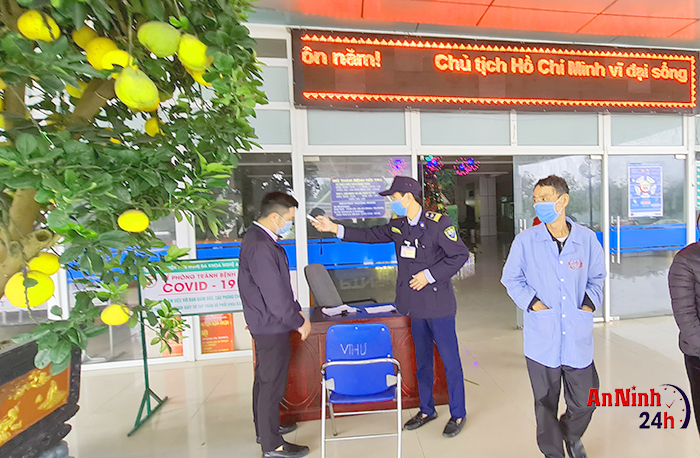 Nhân viên bảo vệ an ninh INVICO đang làm nhiệm vụ tại Bệnh viện đa khoa tỉnh Nghệ An. Ảnh: Lê Hùng