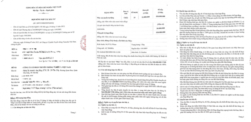 Tháng 6/2021, bị thuyết phục bởi cam kết lợi nhuận của ông V., anh M. kí hợp đồng đầu tiên với V.MEDIA, trong đó, anh M. đồng ý chi 75 triệu đồng mua 5 máy rửa tay kèm màn hình quảng cáo của V.MEDIA rồi ủy thác để công ty kinh doanh. V.MEDIA cam kết trả anh M. khoảng một triệu đồng/máy/tháng trong vòng 24 tháng, tương đương lợi nhuận khoảng 30%/ năm.