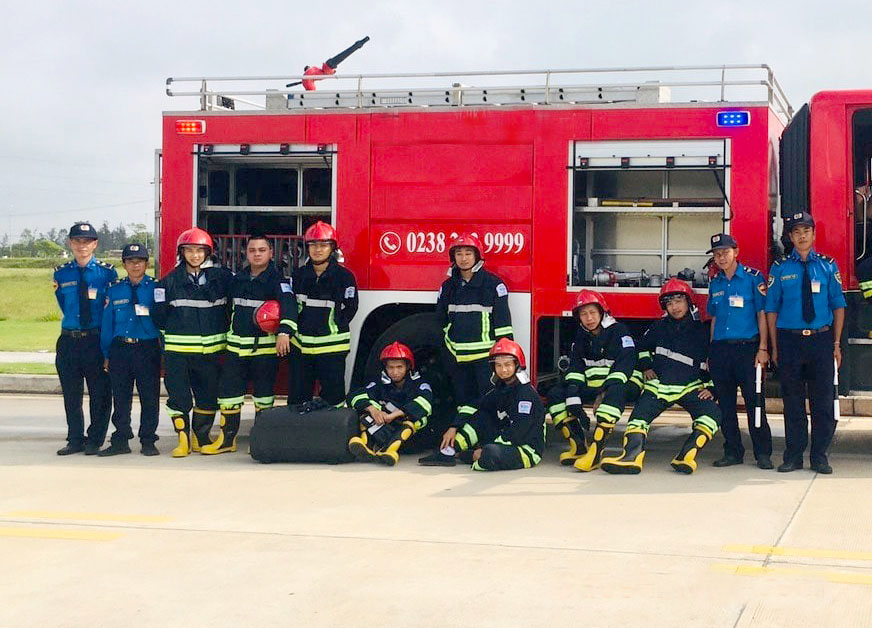 Nhân viên bảo vệ INVICO sẵn sàng tập thực tập phương án chữa cháy. Ảnh INVICO cung cấp
