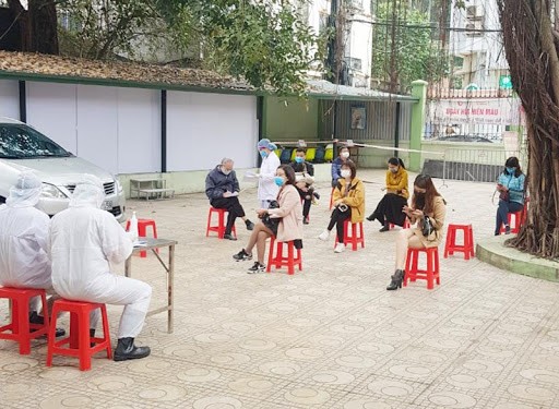 Lấy mẫu xét nghiệm phòng ngừa Covid-19 cho người dân từ Hải Dương về Hà Nội. (Nguồn: Bộ Y tế)
