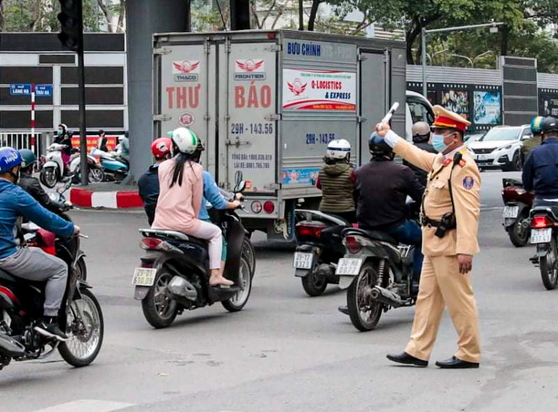 Cán bộ CSGT làm nhiệm vụ tại nội đô Hà Nội.